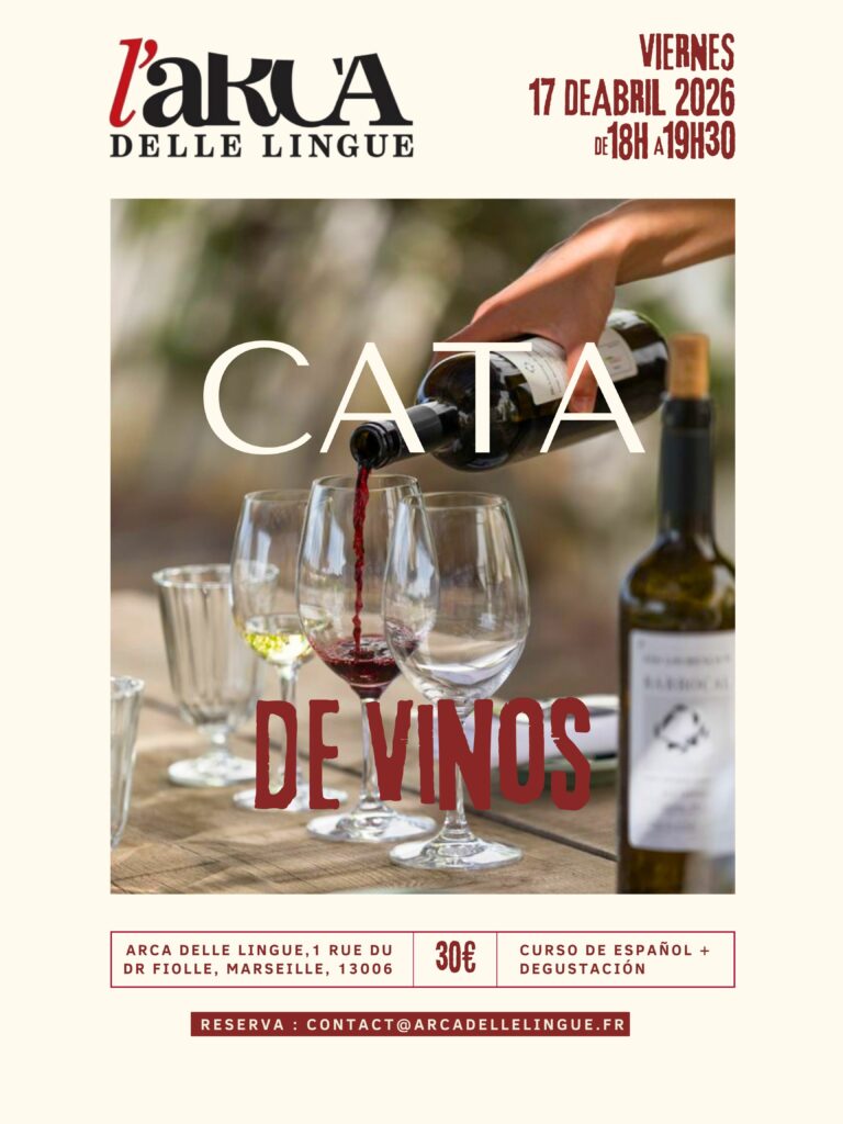 Le vendredi 17 avril 2026, de 18h à 19h30, L’Arca delle lingue propose une cata de vinos, une activité originale qui mêle apprentissage de l’espagnol et dégustation.